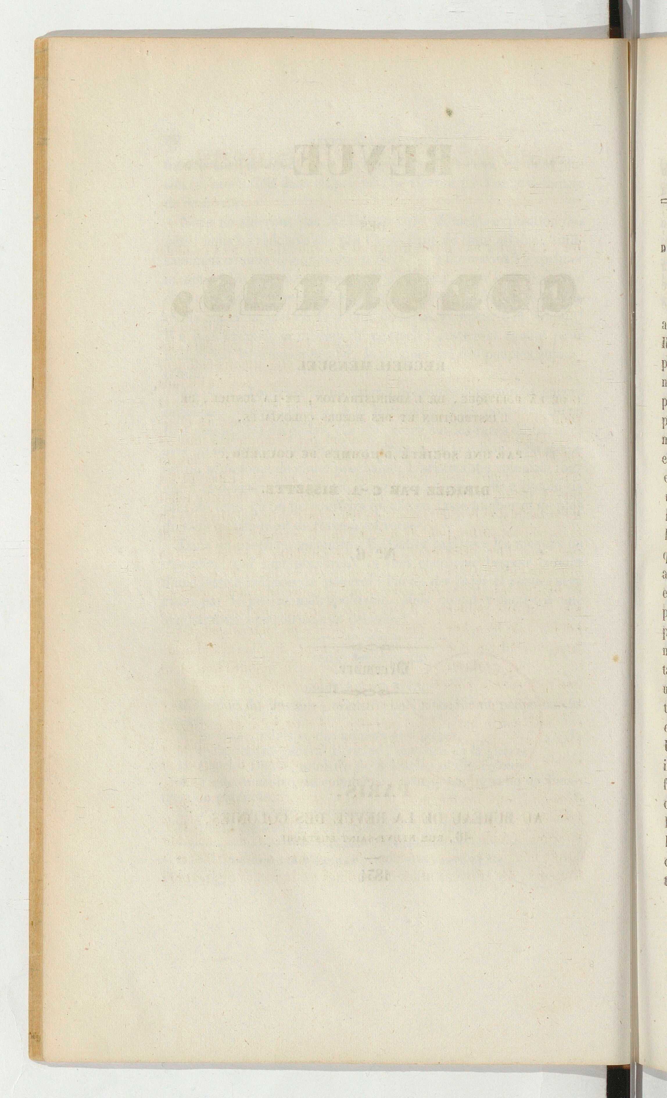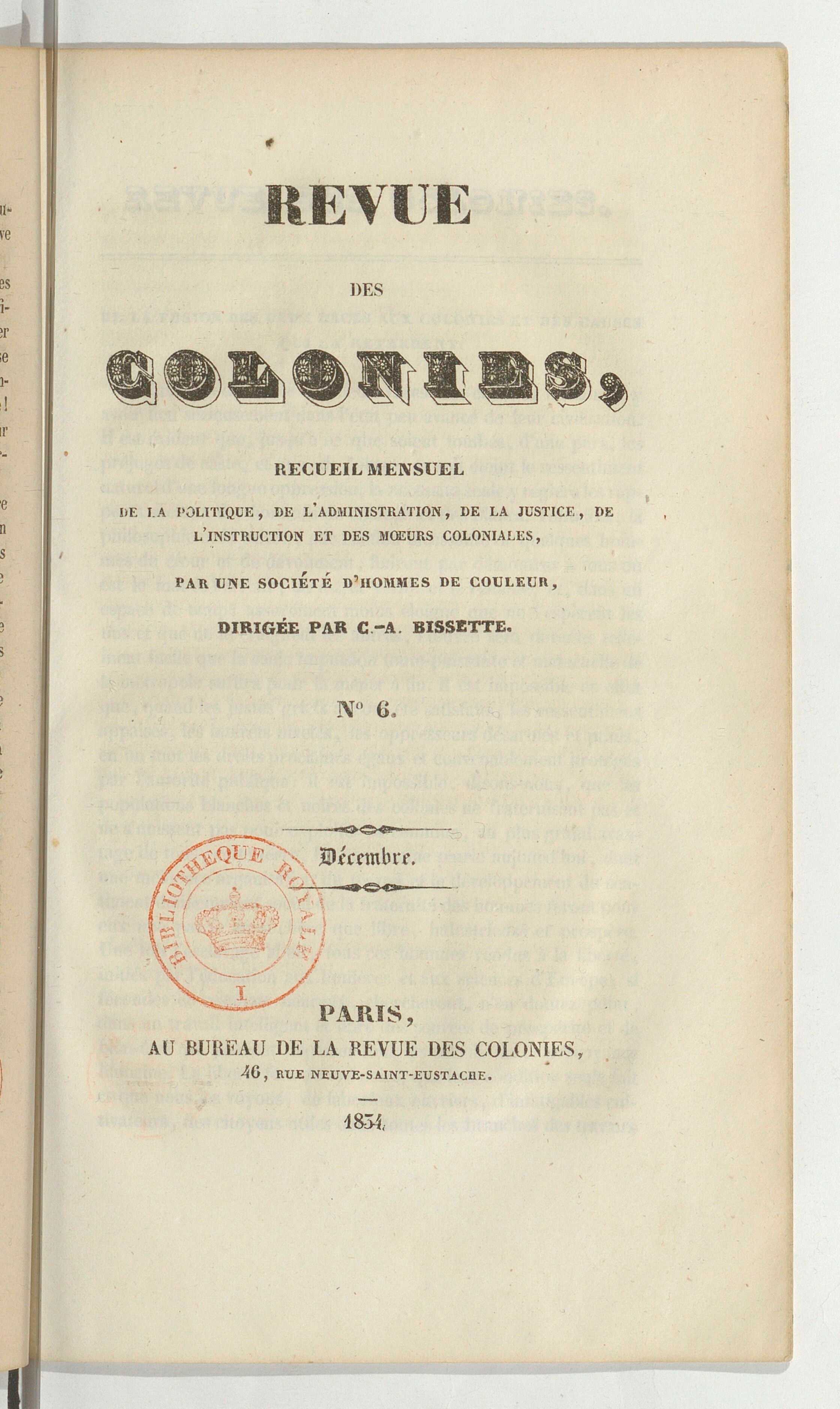 ADMINISTRATION, JUSTICE, INSTRUCTION AND COLONIAL CUSTOMS,BY A SOCIETY OF MEN OF COLORSOCIETY OF MEN OF COLORDIRECTED BY C.-A. BISSETTEC.-A. BISSETTE.N°6December.PARIS, AT THE OFFICE OF THE